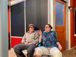 Senior Melody Lindenmoyer and freshman Lucas Fenstermaker portray Maude and Clarence; a comical duo of gossips who set up shop each day to people watch and insert themselves into many characters’ stories.