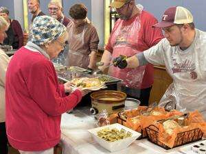 Brian Shaner of Lehighton serves Margaret Smith of Weissport at the free Thanksgiving Dinner at the St. Peter’s Community Resource Center. See story on Gilbert Legion dinner on Page 3. JAMES LOGUE JR./SPECIAL TO THE TIMES NEWS