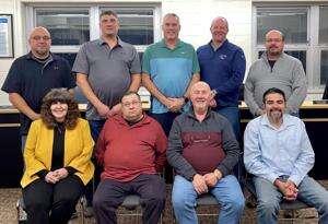 The Panther Valley School Board reorganized on Wednesday welcoming two new board members and retaining two in leadership roles. The board includes, from left, front row: Kim Laird, new board member and board secretary; Anthony DeMarco, Pat Leonzi, board treasurer; and Marco D’Ancona. In the back row are Ryan Eidle; Ron Yuricheck, new board member; Daniel Matika, board president; Michael Alabovitz; and Shawn Hoben, board vice president. KELLY MONITZ SOCHA/TIMES NEWS