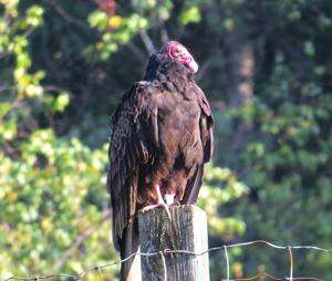 In flight, the turkey vulture’s dihedral wing shape, a slight v shape, helps you distinguish it from a black vulture. If you see them perched, the black vulture will never show the reddish head of an adult turkey vulture.