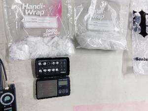 A search of the Subaru yielded a pound of methamphetamine in a plastic bag, another half-pound of methamphetamine in a plastic bag, an electronic scale with methamphetamine residue, and a small amount of marijuana, according to police.