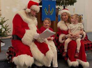 Santa and Mrs. Claus visit with Sarah and Elizabeth Strohl during Polk Township’s Christmas celebration Sunday. The event included a visit the Polk Township Fire engine and the Grinch. CONTRIBUTED PHOTOS