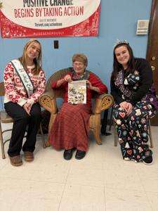 Above: Shirley Haydt reads “Pennsylvania Dutch Night Before Christmas” during Polk Township’s Christmas celebration. With her are West End Fair Princess Falon Schaefer and Junior Miss Princess Isabella Haley.