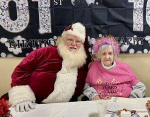 “I wish her a happy birthday and many more,” said Santa Claus, also known as John Schwartz. “She has her memory and is sharp as a tack.”