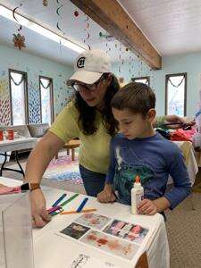 Julia Shoff helps her son Samson, 6, create a Christmas ornament at the Tamaqua Public Library on Saturday. Shoff’s sons, Lazarus, 5, and Eleazar, 2, also participated in the fun. JILL WHALEN/TIMES NEWS