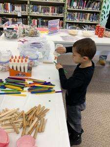 Lazarus Shoff, 5, applies glue to an ornament he was making at the Tamaqua Public Library on Saturday. JILL WHALEN/TIMES NEWS