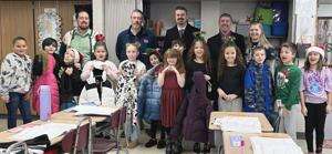 Students from Kayla Stanek’s third-grade class at Panther Valley Elementary hold some of the winter coats donated by the Greater Lehigh Valley Realtors’ Association this week. Standing from left, front row, are: Rosannie Rodriguez, Daniel Perron-Paglione, Aiden Sprow, Yainailz Galarza Garcia, Bliss Perry, Harper Lorah, Amelia Taschler, Lincoln Klitsch, Abigail Garcia Rivera, Emmaliz Garcia Rivera, Isaac Hargett, John Uher, Zkie Geary; and back row: Robert Palazzo, Panther Valley Curriculum, Student and Community Services supervisor; Michael Bernadyn, association president; Justin Porembo, association CEO; Superintendent Dave McAndrew; and Kayla Stanek, teacher. CONTRIBUTED PHOTO