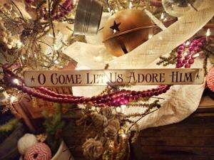 “I add milk cans, chicken wire ribbon, cranberries, and snowflakes to my tree as well, along with a sign that says, ‘O Come, Let Us Adore Him,’ ” Eckhart said.