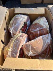 In all, the group collected 16 carts of groceries and 133 hams, which they delivered on Monday to the Salvation Army. They also collected 15 grocery bags full of dog and cat food, which they dropped off at AWSOM.