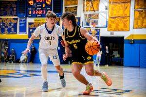 Marian’s Jake Tom helped keep the Colts in front early, scoring 15 points — nine in the first half — using his speed to offset Panther Valley’s size.