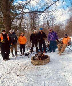The Friends of Beltzville group, growing with 117 members, organized the hike. To warm up, people gathered at the fire pit before and after the walk.