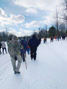 The First Day hike at Beltzville State Park started out as a 15-degree windy day, with snow and ice covering trails. Over 600 walkers expressed interest on Facebook, and 147 turned out for the hike Thursday, with many dogs in tow.