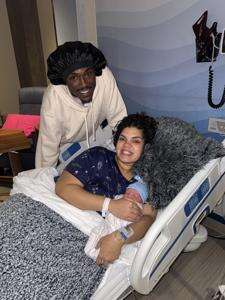 Kobie Smith and Brian Roberson with their newborn son Ja’coby Asher Roberson. Ja’ coby, weighing 8 pounds, 6 ounces was born at 1:11 a.m. on New Year’s Day at the St. Luke’s Anderson campus. He was the first baby of the new year at St. Luke’s campuses. CONTRIBUTED PHOTO