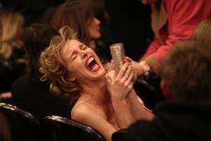 The quick-fire pattern of manufactured giggles — “oh, hoo hoo hoo, eeh, ha ha ha”— soon ripples into genuine laughter, and she giddily kicks her feet.