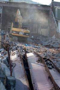 Demolition on the former Strand Theatre, later renamed the Roxy Theatre, on East Catawissa Street, began just before the new year; however construction crews made significant progress on the project this week, with the front of the theater expected to come down today.