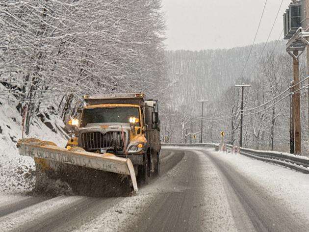 A PennDOT truck plows Route 209 between Jim Thorpe and Lehighton on Sunday morning. JAMES LOGUE JR./SPECIAL TO THE TIMES NEWS