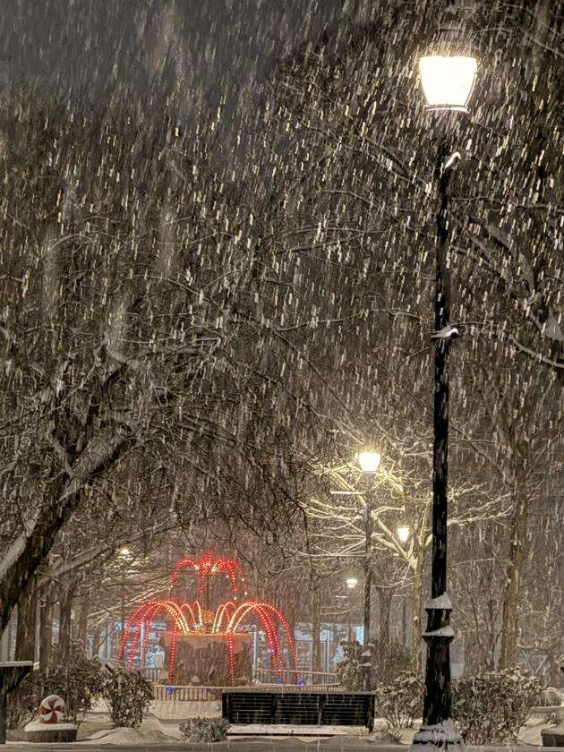 Snow falls in Lower park in Lehighton early Sunday morning. There was a break for people to clear sidewalks and driveways and then another 1-2 inches fell over the area. Submit your snow photos to tneditor@tnonline.com. JAMES LOGUE JR./SPECIAL TO THE TIMES NEWS