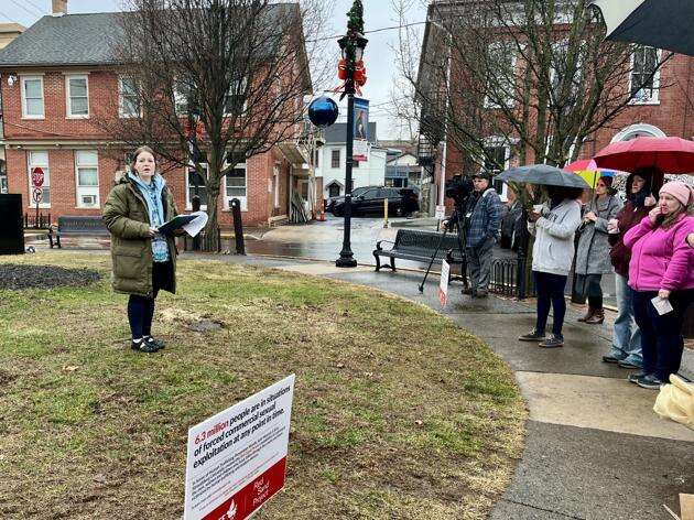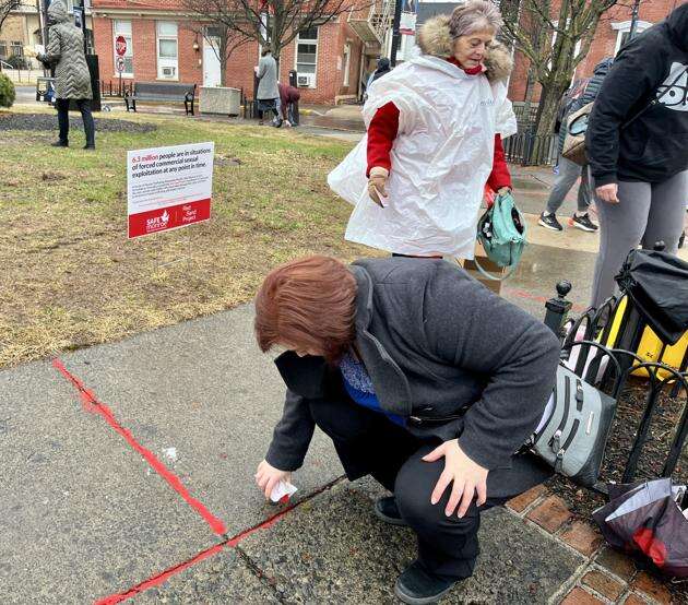 Safe Monroe held a Red Line Project event last Wednesday at Courthouse Square in Stroudsburg to call attention to the crime of human trafficking.
