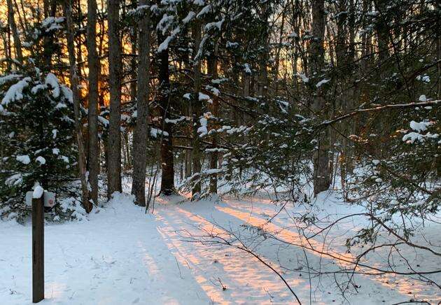 The sunset reflects on the snow in Tuscarora State Park Monday afternoon. JILL WHALEN/TIMES NEWS