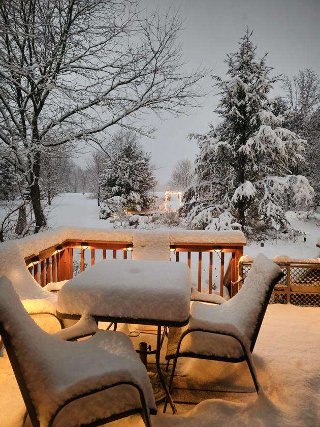 It wasn’t exactly picnic weather. Snow piled up on the patio furniture at the Ferguson house in Towamensing Township. CONTRIBUTED PHOTO
