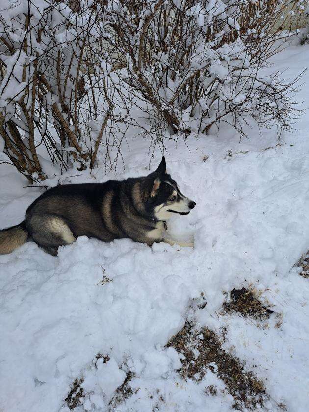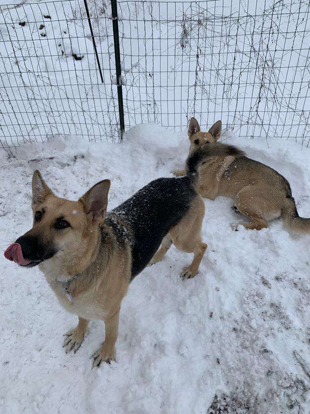 Rhonda Burian shoveled a path for her tri-pawed dog at her home in Lehigh Township. CONTRIBUTED PHOTO