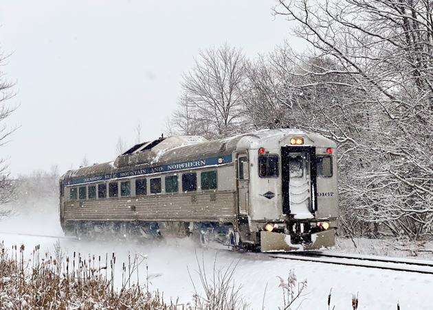 Falling snow last Saturday didn’t stop Reading & Northern’s all-day excursion from Reading Outer Station. The rail diesel car travels through the Hauto Valley Estates portion of Nesquehoning on its way to Jim Thorpe. More snow is on the way on Sunday. Check tnonline.com for the latest forecast. For storm prep, see page 7. AMY MILLER/TIMES NEWS