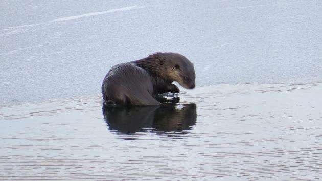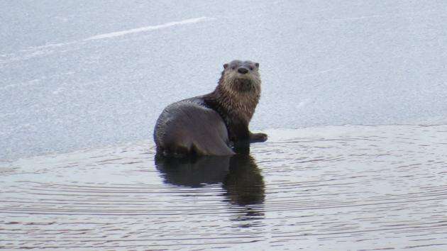 This otter was photographed about three years ago on the ice of Wild Creek Reservoir. Based on the size, I believe it was a male. Males can reach almost 25 pounds.