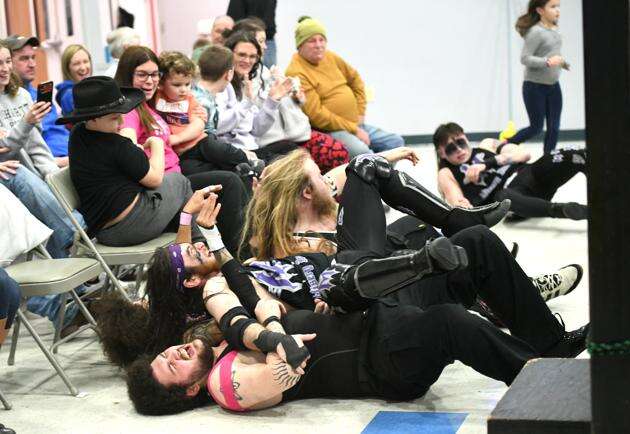 Vi Daniels and Troy Locke, both of Bayville, New Jersey, won the tag team championship on Saturday’s wrestling card as Misery Inc. Locke said they’ve been a team for four years. Daniels works at a Honda dealership, while Locke works for Mack Trucks. Daniels said he’s been a pro wrestling fan since age 6, when his father took him each month to Madison Square Garden shows.
