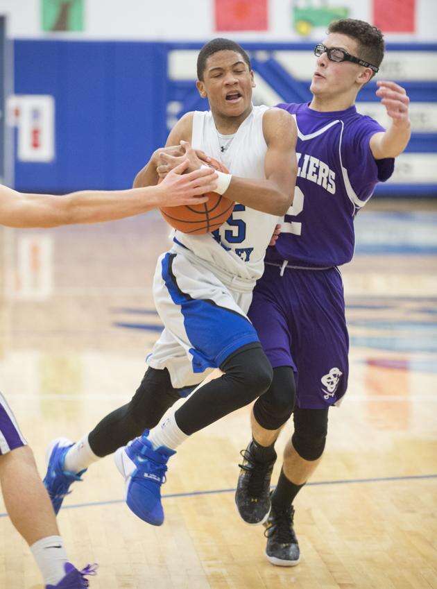 January 26, 2016 — Pleasant Valley’ Lucas Schaffner breaks a tie game with just over a minute to play with a pair of free throws and adds another foul shot with 11.2 ticks left on the clock to help the Bears gain a narrow 54-53 EPC victory over East Stroudsburg South. Elijah Munford also hits a pair at the charity stripe in the game’s final minute to aid the winning cause. Alex Gerolimatos finishes with a team-high 16 points for PV, coached by Matt Gould. Munford contributes 15 points, including 6-of-6 at the foul line. The winners also receive 10 points from Chris Barker and nine from Schaffner.