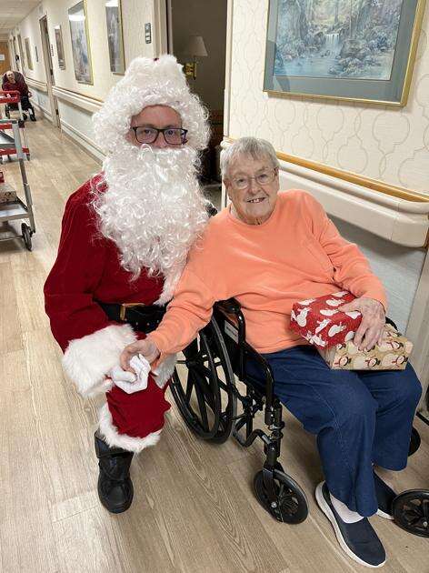 Santa gives a gift to Anna Strohl, a resident at Mahoning Post Acute Nursing & Rehabilitation.