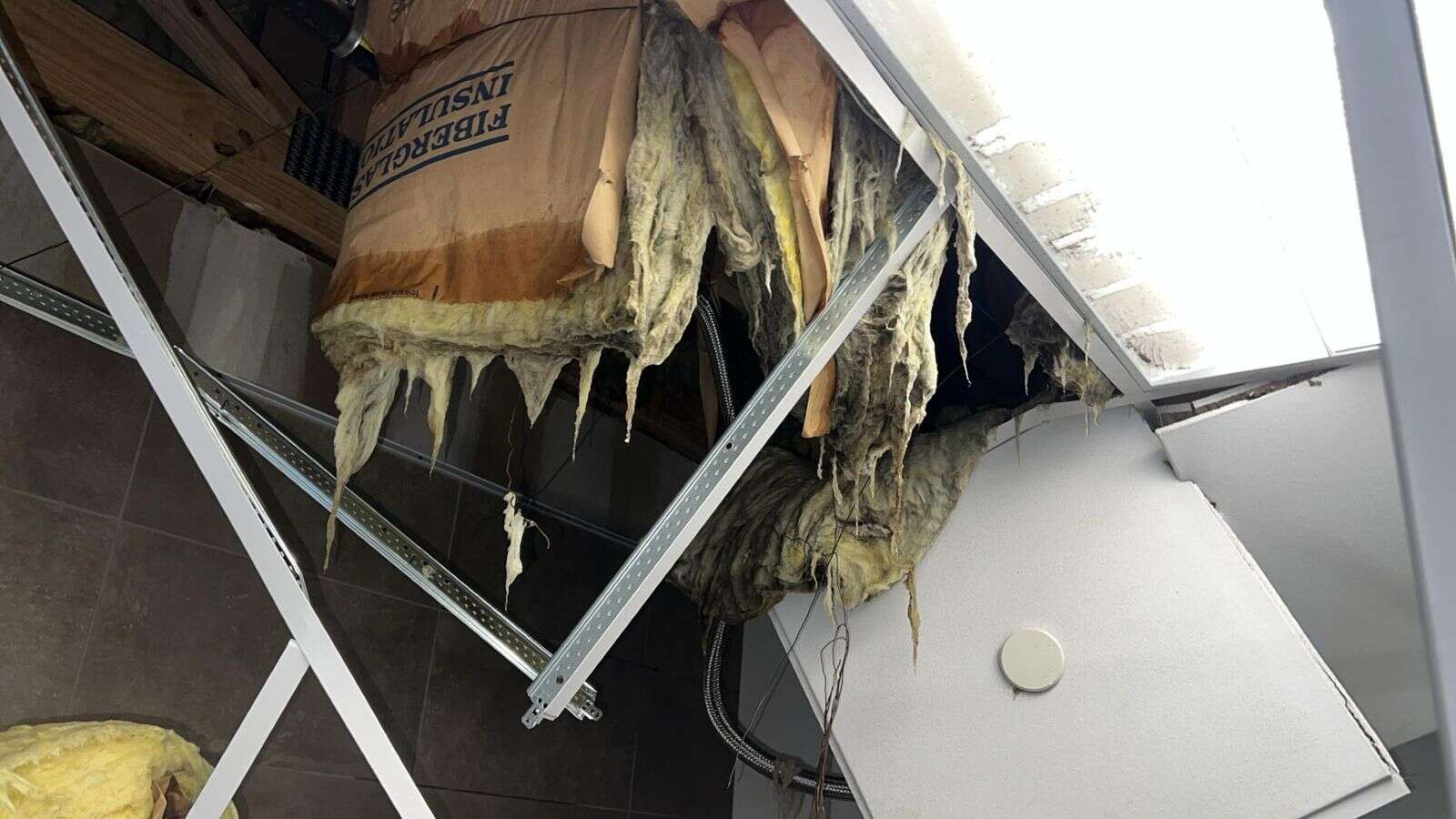 Restoration workers have removed carpets from affected offices, and officials are assessing whether underlying flooring and drywall sustained damage.