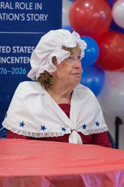 Sarah Dalton, dressed at Betsy Ross, listens to the speakers during the America250 PA kick-off event in Carbon County.