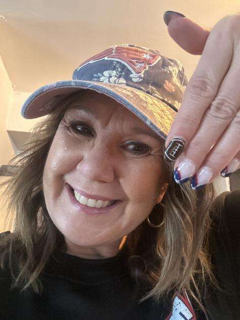 Joyce Paulinho of Palmerton shows off her nails, decorated for her favorite team. She grew up in Massachusetts and moved to Palmerton. She has been wearing Patriots-themed clothes all week to get ready for the game on Sunday. CONTRIBUTED PHOTOS