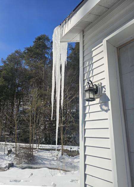 Left: With the cold weather icicles are forming everywhere. Robert Kerr shared this photo of a monster icicle taken from his backyard on west side of Princeton Avenue in Palmerton. The big one is probably about 3 feet long from the top as it started in the top of the roof and came down past the adjacent power line connected to the home. The main shaft goes off about another 10 to 12 inches due to the overhang from the roof above it. CONTRIBUTED PHOTOS