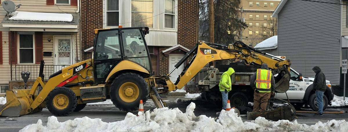 Tamaqua water department crews are working on a water main break on Railroad Street, Route 309. The break was discovered just before 4 p.m. Tuesday when residents discovered water pouring up through the asphalt of the street. Tamaqua police have reduced the roadway to one lane. COPYRIGHT LARY NEFF/SPECIAL TO THE TIMES NEWS