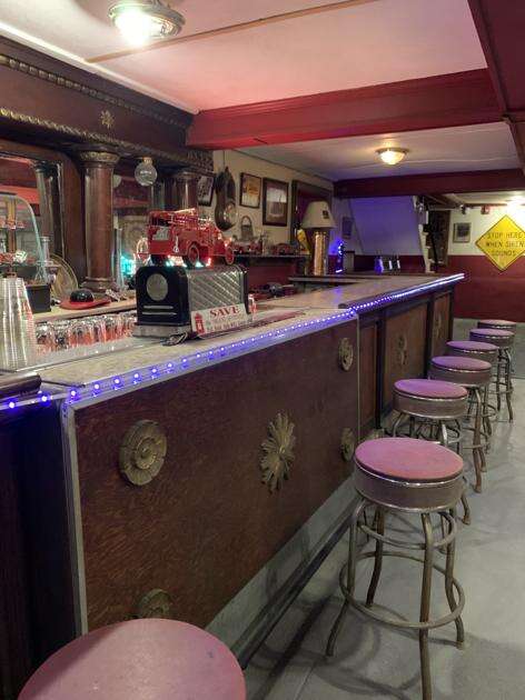 Downstairs is the social room and bar used by the Columbia Fire Company before it moved to a new site on West Center Street. The watering hole is original, right down to a functioning “trough” that runs along the length of the oakwood bar.