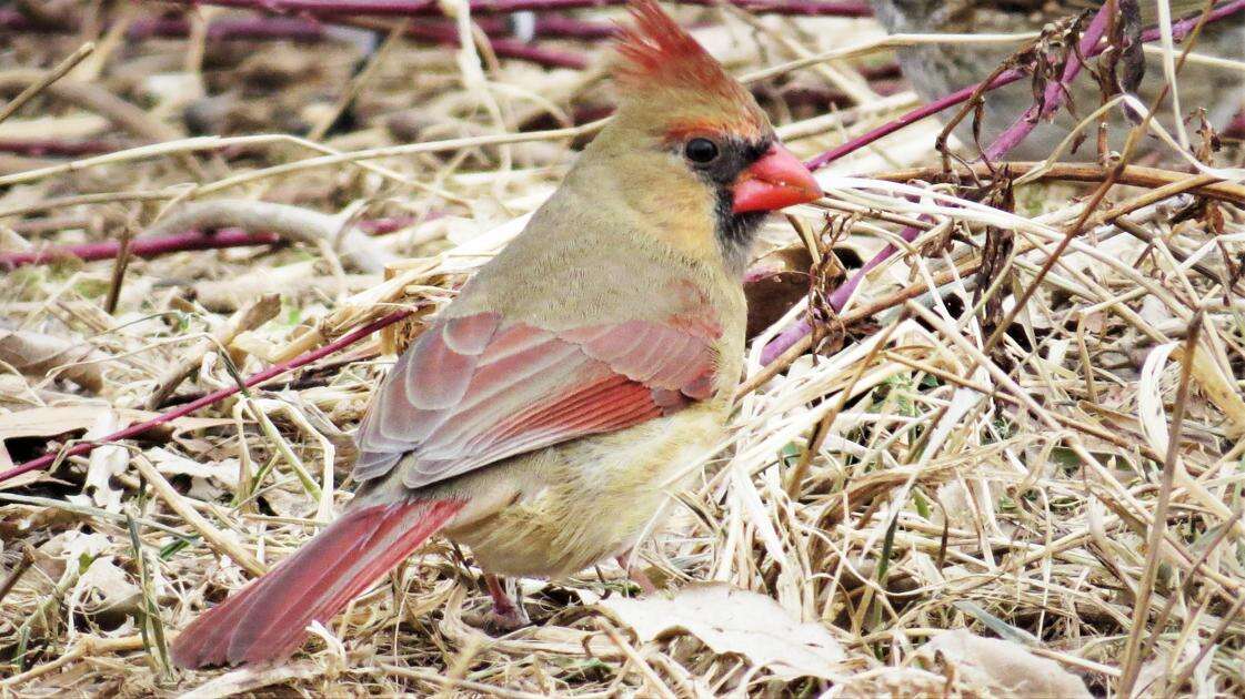 A female cardinal, shortly followed by her mate, was the first to visit the feeder in the very dim morning light. BARRY REED/SPECIAL TO THE TIMES NEWS