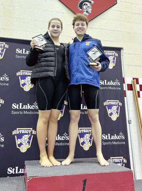 Marian’s Lydia Strucko, left, and Michael Strucko were both named Swimmers of the Meet at the District 11 championships. MIKE HAINES/TIMES NEWS