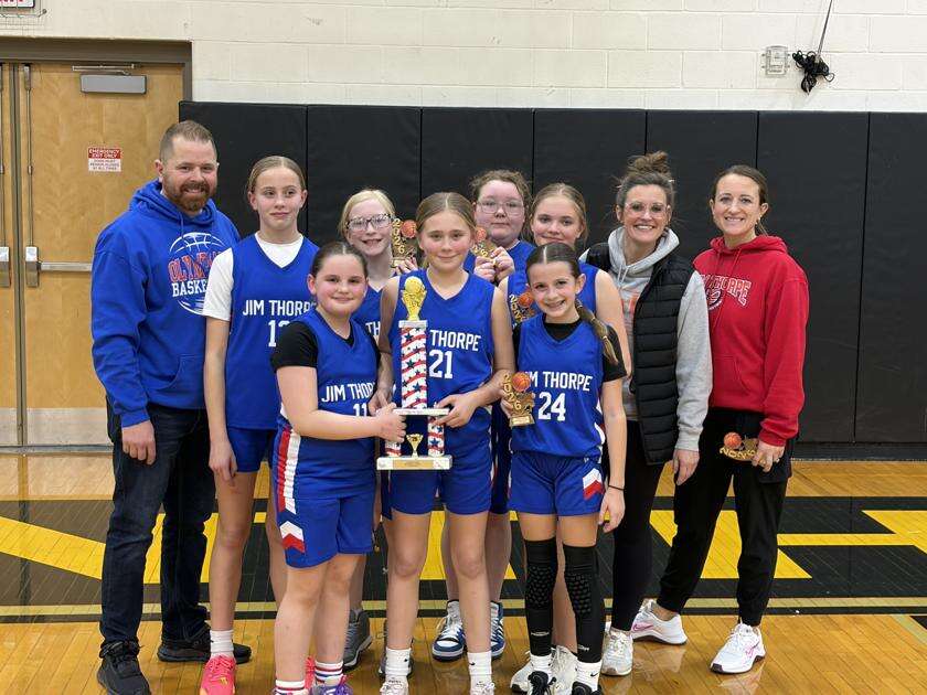 The Jim Thorpe grades 5/6 girls team recently captured the Carbon Youth Basketball League championship. Members of the team included Ava Clee, Carlee Confer, Chloe Confer, Emberlynn Persavage, Annaliese Remmel, Konstance Volovski, and Cassidy Witner. CONTRIBUTED PHOTO