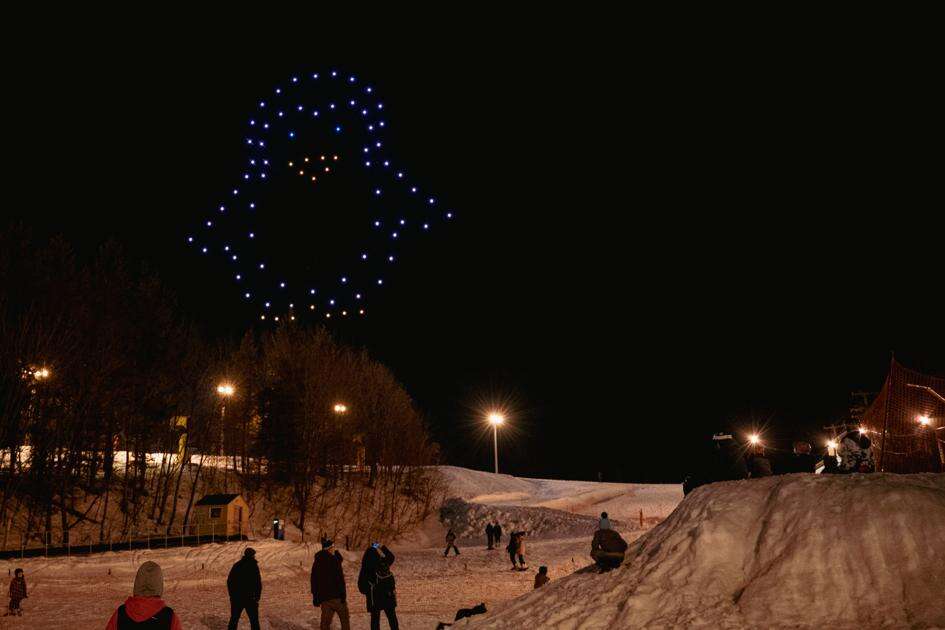 Above: Drones spell out Winter Fest at Blue Mountain Resort Saturday night. PHOTOS BY DANIEL STARK/SPECIAL TO THE TIMES NEWS