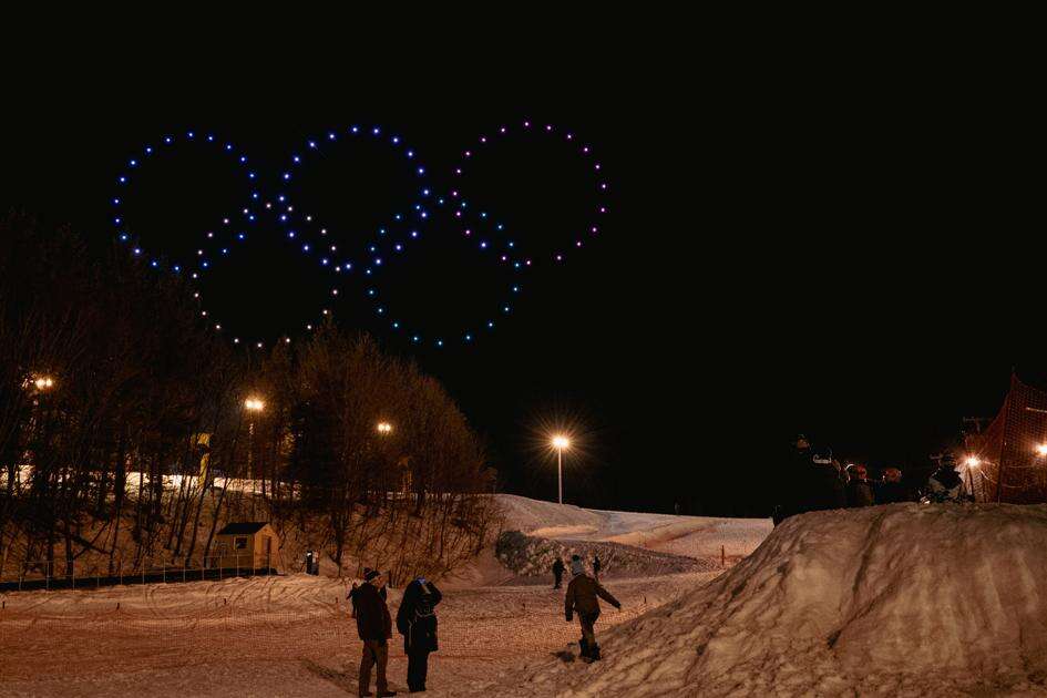 Drones do a tribute to the Olympics during the Blue Mountain winter festival.