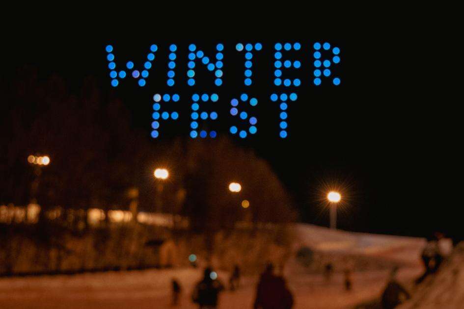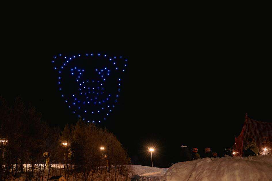 The drone show lit up the sky with ski and winter designs.