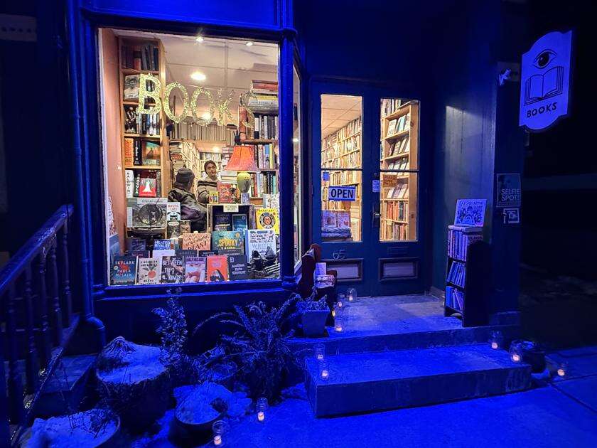 Sellers Books & Art at 65 Broadway, Jim Thorpe, brought out the candles and the ultraviolet lights for the Luminary Walk at the recent winter fest. JAMES LOGUE JR./SPECIAL TO THE TIMES NEWS