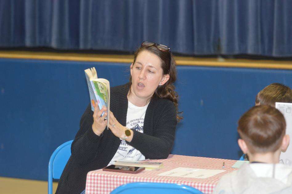 Lindsey Armitage, a Towamensing Elementary reading specialist, reads Roald Dahl’s “The BFG” during a “book tasting” event Thursday at the school. The book tasting is one of several activities the school held throughout the week to celebrate “Read Across America.” JARRAD HEDES/TIMES NEWS