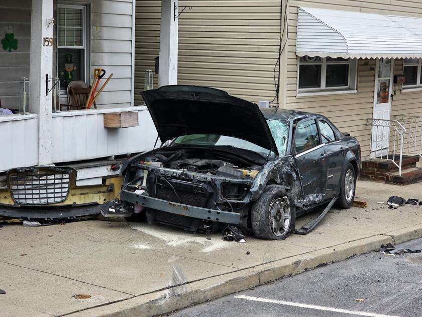 The vehicle crossed the street striking a parked car with such force it drove it up onto the sidewalk. The Ford continued on, hitting a building at the intersection, then hit a van before coming to rest.