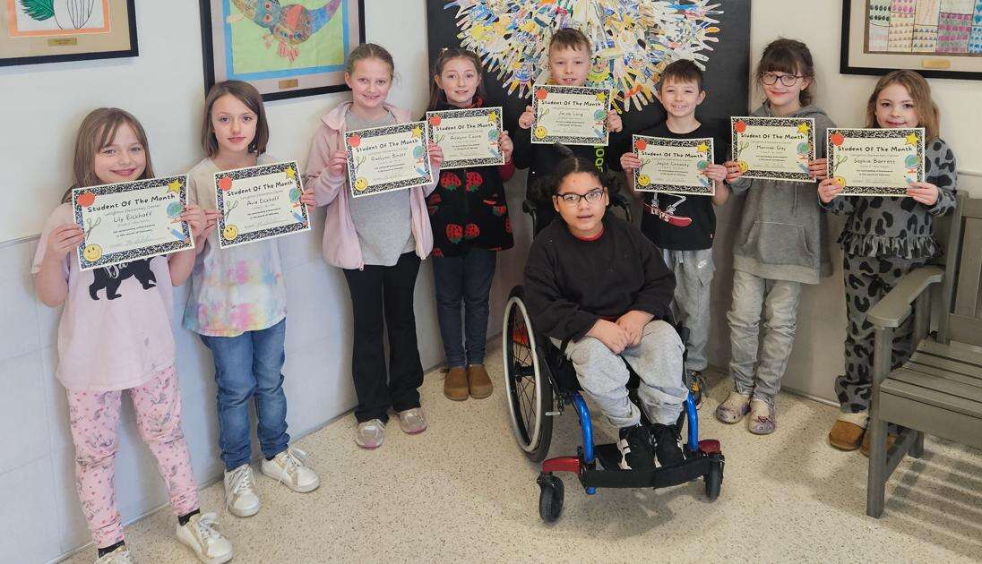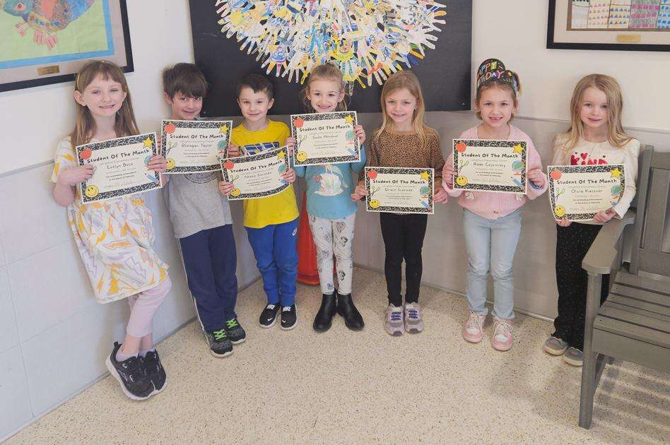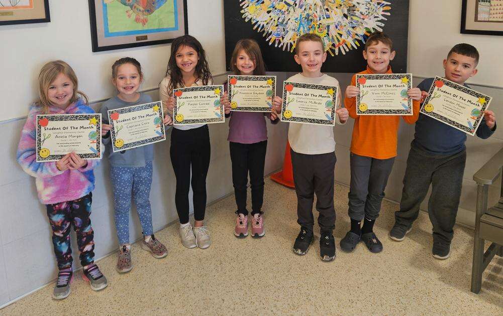 Lehighton Area Elementary Center recently announced the February Students of the Month from kindergarten through second grade. First grade recipients are, from left, Amelia Morgan, Capriana Citro, Paislee Conrad, Khaleesia Gaydula, Emerick McArdle, Vonn McClintic and Landon Moser.