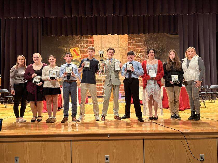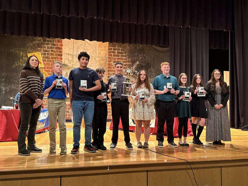 ACE Competition 3rd Place Team, Palmerton Area School District, from left are: Sarah Smith, adviser; team members, Lucas Beahn, Geovany Castillo Andrade, Alexander Delich, Jace Farkas, Harper Hahn and Matthew Jahelka. Alternates are Sophia Hedes and Emma Hirt, with adviser, Melissa Hoffman. JAMES LOGUE JR./SPECIAL TO THE TIMES NEWS