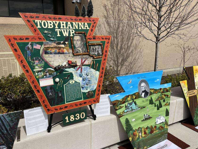 Left: These are two of the many keystones decorated to represent their townships in Monroe County. The Tobyhanna keystone was painted by Gail Odonoghue and Art Storm. The Polk Township one beside it was painted by Linda Stockman-Connors.