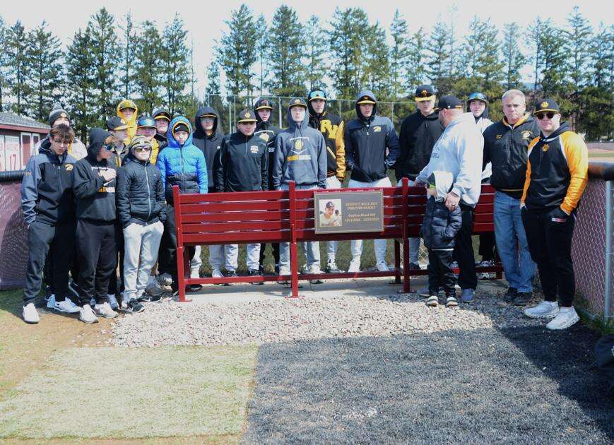 The announcer at Kutztown said that the bench indicates that Hoody “will forever be a part of the Kutztown baseball team.”