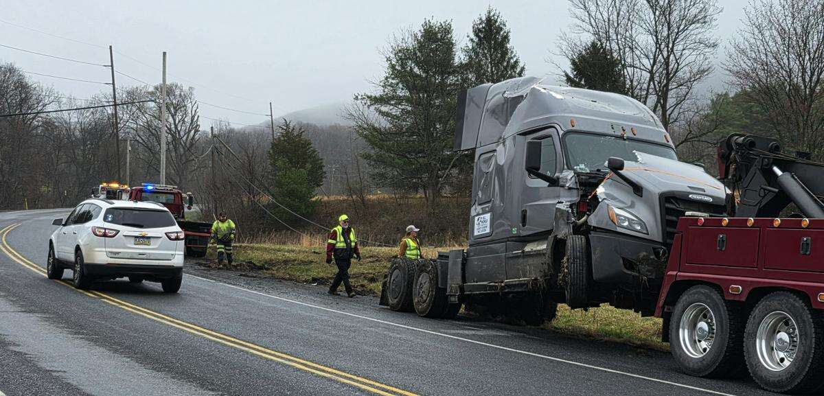 The truck entered the south berm where it snapped off a utility pole, bringing down heavy utility lines. State police at Frackville are investigating the incident.